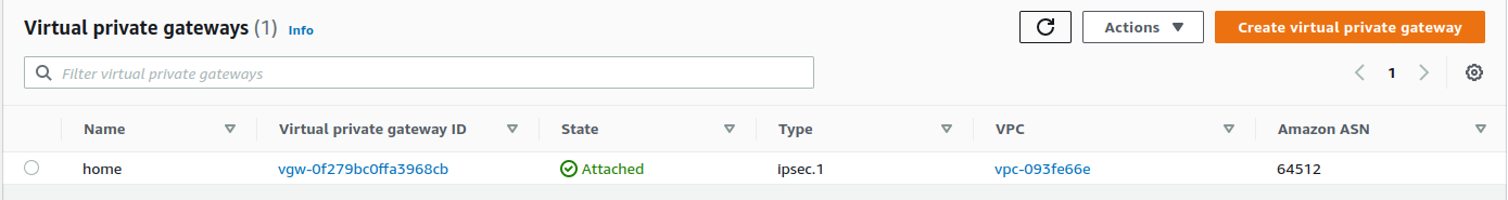 - Select Virtual private gateway